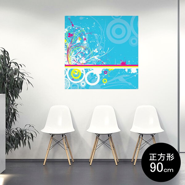 ポスター ウォールステッカー シール式ステッカー 飾り 90×90cm Lsize 正方形 壁 インテリア おしゃれ 剥がせる wall sticker poster 007712 花 フラワー 水色 ペンキ