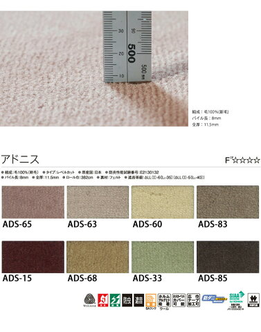 ADS-65、ADS-63、ADS-60、ADS-83、ADS-15、ADS-68、ADS-33、ADS-85、ADS 65、ADS 63、ADS 60、ADS 83、ADS 15、ADS 68、ADS 33、ADS 85、ADS65、ADS63、ADS60、ADS83、ADS15、ADS68、ADS33、ADS85、素足に心地よいウール100%カーペット オーダーカーペット アスワン アドニス タテ1m×ヨコ1mあたり ※フチ縫い加工なしの場合 特価 ¥8900(税抜・送料別) ※デジタル画像のため、お客様のパソコン環境により、画面上の色と商品の色は異なる場合がございます。